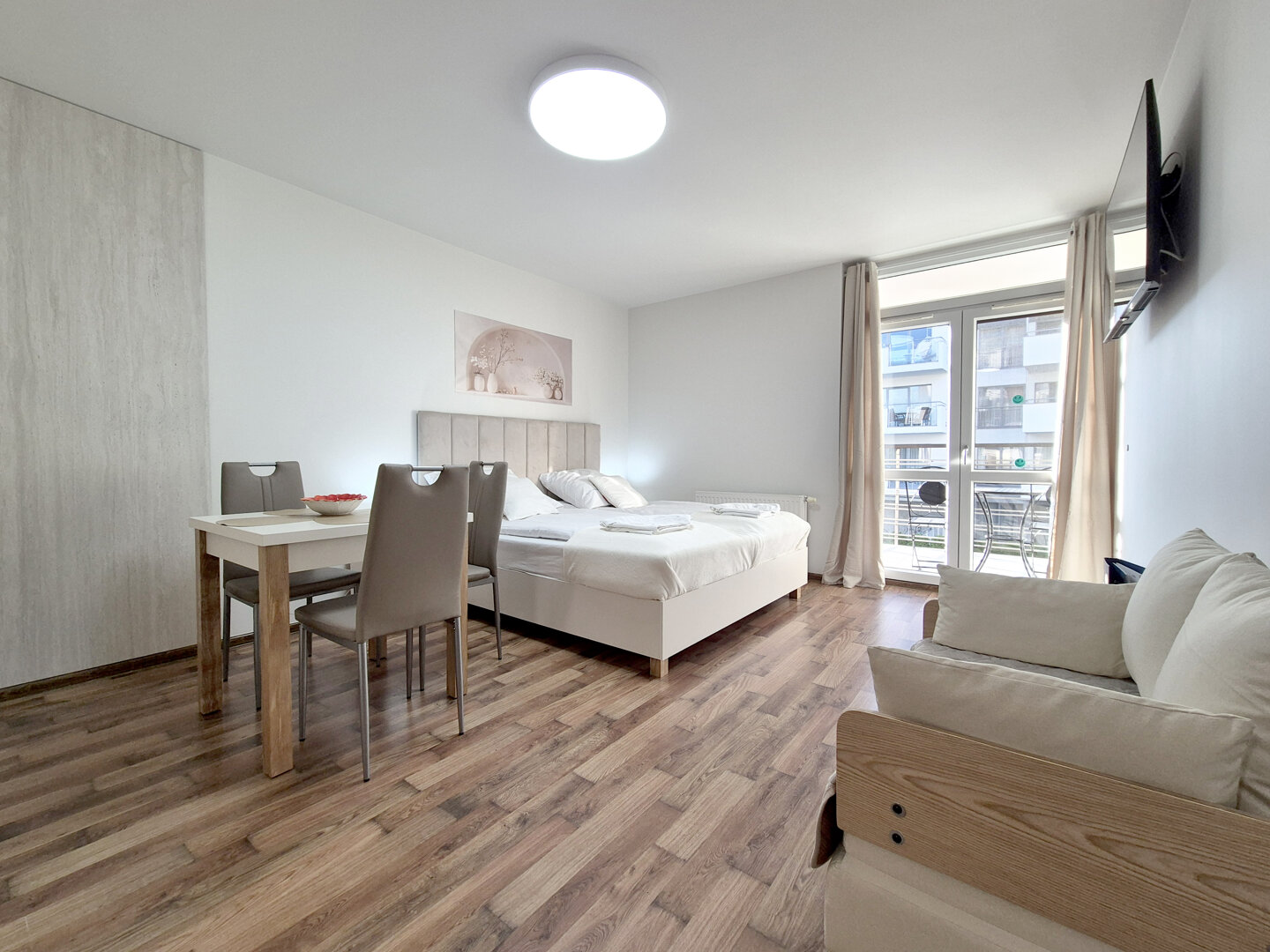 The final cleaning fee ranges from PLN 150.00 to PLN 300.00 (the amount for cleaning is individual for each flat and appears in the further steps of the reservation) is charged once for each stay. Tourist tax - PLN 4.80 per night for each person is also a fee that must be paid.